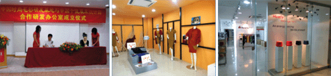 为促进基地毛衫研发设计水平提升和突破,充分利用基地公共服务平台和优势,发挥中国十佳服装设计师的专业知识和技能,实现基地和中国服装十佳设计师的强强联盟,2009年9月份签约了“中国十佳服装设计师”, 成立合作研发办公室,共同开展研发工作,开发最新研究成果,在基地设立专项展厅,展示他们的最新作品,供前来基地采购、交流的业内人士参考。